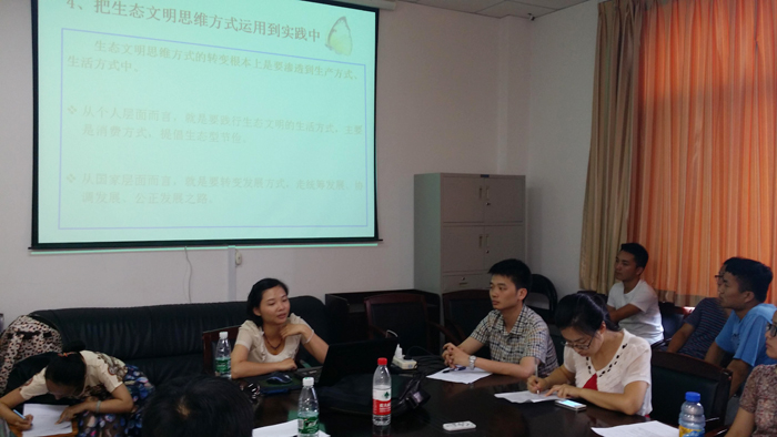 6月29日下午,威廉体育williamhill马克思主义学院2015年第4期“教授博士论坛”在金盆岭校区4教503教室举行。钟芙蓉博士以“转变思维方式,推进生态文明”为主题作了精彩的专题报告。本次论坛由张明海副教授主持,马院2014级研究生参加了此次论坛。