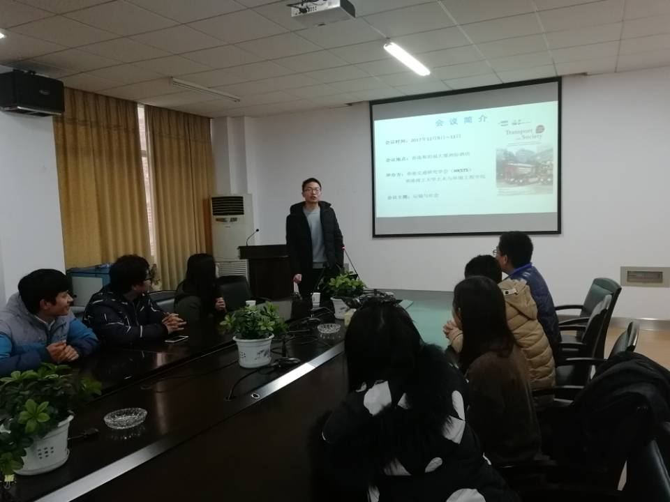 12月15日下午,交通运输工程学院举办的“国际学术会议参会心得分享”报告会于工科二号楼B-413顺利召开。本次报告会由参加完第二十二届香港交通研究学会国际会议的2015级研究生江勇东和陶黎明与同学们进行交流分享。