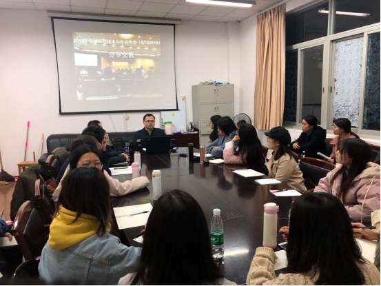 2019年11月18日晚,马克思主义学院思想政治教育专业研究生申军辉在金盆岭校区4教503室举行国际学术会议经验交流会,2019级研究生积极参与并认真聆听。2019年9月4日至7日,申军辉参加了2019全球科学技术与社会年会(Science Technology and Society 2019),并在第110号分会场“Smart Infrastructure”as Relational Practice: Cities, Nations and Corporate Strategies in Framing Cities代表发言,做了题为Data competition in the name of well-being——a study on neighborhood committees’ translation actions in “smart” construction的学术报告。
