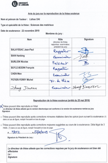 2019年11月22日,我院土木工程专业博士毕业生戴理朝在法国洛林大学顺利通过博士论文答辩。戴理朝博士继2019年1月获得威廉体育williamhill博士学位后,又喜获洛林大学工学博士学位。