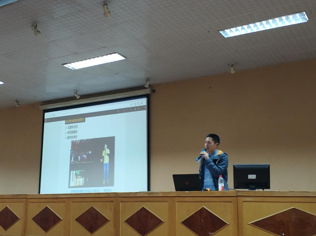 第二位分享者谢李为是湖南省“创青春”大学生创新创业大赛金奖项目负责人,他曾带领学院团队获得校研究生暑期专业实践一等奖。谢同学结合自己参加暑期社会实践的经历和心得体会,从四个方面分享了经验:首先他剖析了优秀项目应该具备的特点,一个好的项目应具有专业性、普遍性、传承性;其次在项目选题时要谨记现实性、创新型、可行性三个原则;如何组建一支优秀团队也相当重要,他提出了“四个一”模式,即“一个日记本、一个笔记本、一篇新闻稿、一场交流会”,让团队成员可以相互依靠,迅速建立团队归属感;最后他指出要学会包装实践产品,汇报的ppt 内容要有逻辑、尽可能做到图文并茂、可以找专业人士为汇报视频配音。