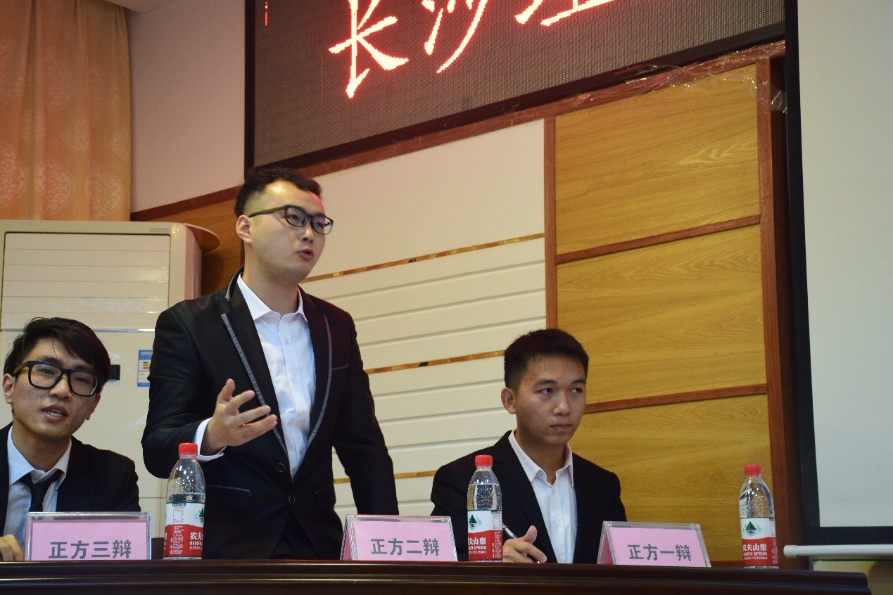 在辩题为“当前世界竞争高于合作/合作高于竞争”的第二场辩论赛中,正方电气与信息工程学院与反方经济与管理学院展开了激烈的辩论。电气与信息工程学院作为正方首先从“个人、市场、制度”三个方面,利用条理清晰的语言,陈述了己方观点。反方经济与管理学院不甘示弱从“合作更能带来个人和社会利益最大化,实现代价的最小化”出发,进行层层剖析,加强己方论证。自由辩论环节中,双方辩友旁征博引,引据论典,将赛场气氛推向高潮。正方用“物竞天择,适者生存”步步紧逼来论证竞争更有利社会发展;反方辩手见招拆招,引用严复的“群学”加强论证合作的重要性,双方辩手唇枪舌战,现场气氛迅速升温,比赛进入到白热化阶段。最后,黄前程老师对本次辩论赛做了精彩点评。他首先表明该辩论赛本身就是竞争与合作的体现,接着肯定了双方的精彩辩论,指出正反双方存在知识准备不充分、论据不足等问题。