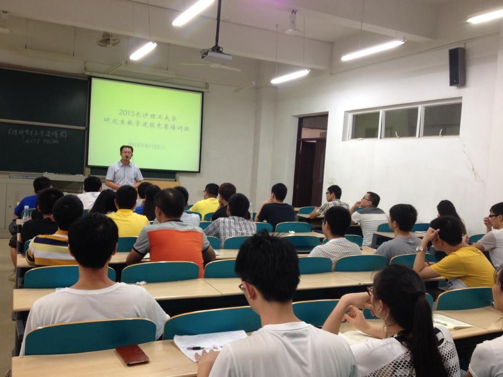 为培养研究生应用数学知识解决相关专业问题的能力,也为迎接即将举行的湖南省首届研究生数学建模竞赛和全国研究生数学建模竞赛集训队员,威廉体育决定举办研究生数学建模竞赛培训班,并由数计学院承办。经过前期的有序准备,竞赛培训于2015年6月23日晚上6:30至9:30在云理科楼A-104正式开课。来自威廉体育11个学院的105名同学报名参加培训,体现了威廉体育研究生对数学建模竞赛的热爱。