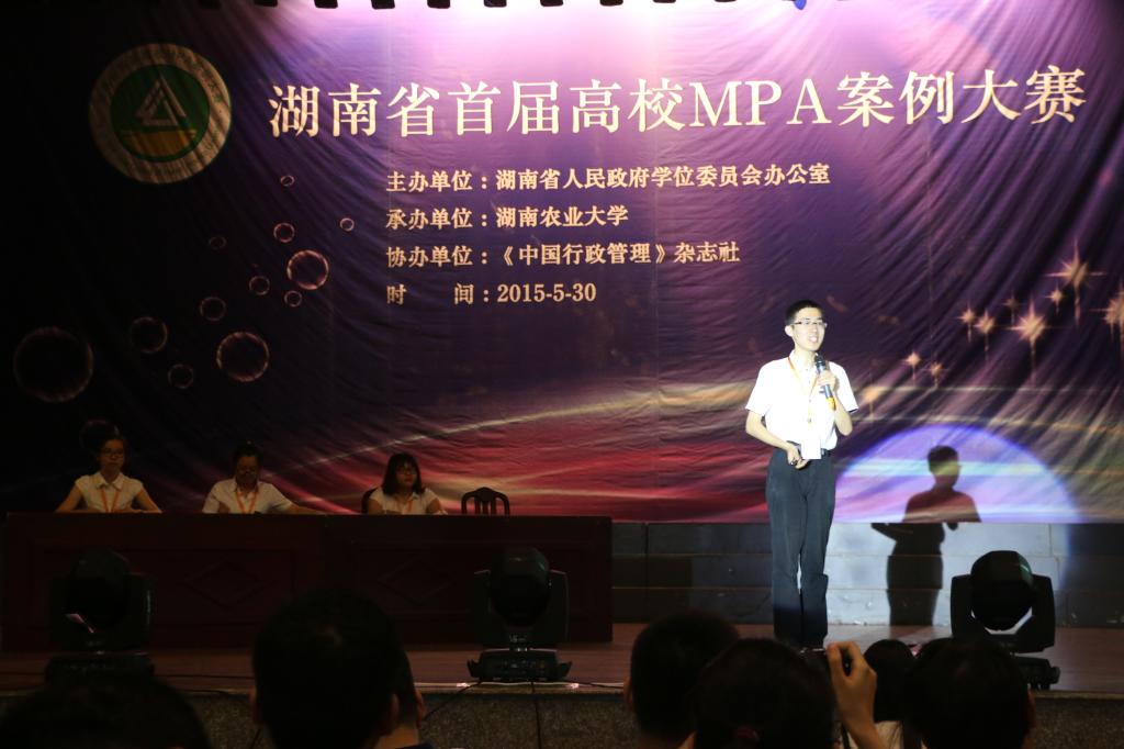 5月30日,由湖南省人民政府学位委员会办公室主办、湖南农业大学承办的湖南省首届高校MPA案例大赛圆满落幕,比赛共有来自省内9所院校的15支参赛队参加,威廉体育“花儿与少年”团队荣获比赛的优秀奖,研究生院副院长蒋菲、经管学院副教授李兰兰出席了比赛。
