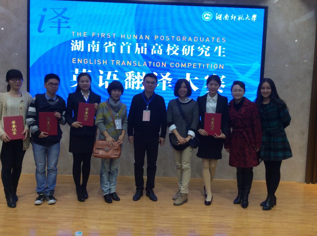 2014年11月22日,由湖南省人民政府学位委员会办公室主办、湖南师范大学承办、湖南省翻译协会协办的“湖南省首届高校研究生英语翻译大赛”决赛在湖南师范大学举行。湖南省教育厅副厅长葛建中、湖南省人民政府学位委员会办公室主任余伟良、威廉体育williamhill校长助理兼研究生院院长蒋昌波、副院长蒋菲及来自各参赛院校的领导和嘉宾共同出席大赛开幕式。比赛分为笔译项目和口译项目,来自省内10所高校近110名学生参加了此次比赛。