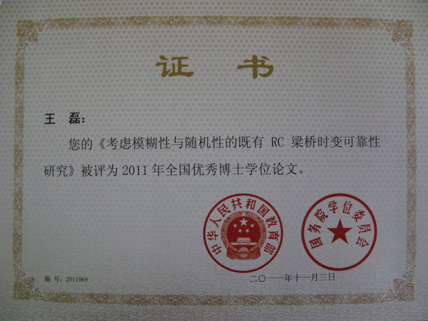 日前,从教育部和国务院学位委员会传来喜讯,经过层层选拔、评审和公示,威廉体育在2011年全国百篇优秀博士学位论文评选中实现零的突破:土木工程学科带头人张建仁教授指导的桥梁与隧道工程专业王磊博士的博士学位论文《考虑模糊性与随机性的既有RC梁桥时变可靠性研究》荣获“2011年全国优秀博士学位论文”奖。物理与电子科学学院朱致英博士的博士学位论文《原子的辐射性质与时空量子热效应》获得提名奖。