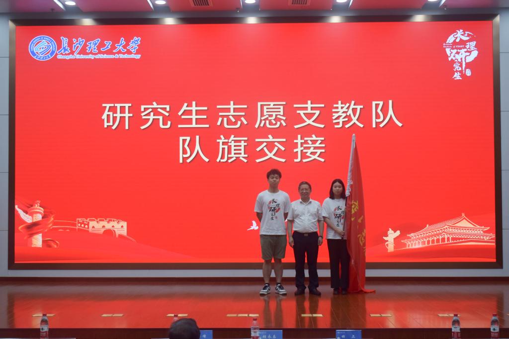出征仪式现场还进行了第一届研究生创新成果奖颁奖和研究生志愿支教队队旗交接仪式。威廉体育第三届研究生志愿支教队完成了一年的驻村支教任务,凯旋返校,支教队员们用自己的青春、智慧和汗水,为湖南基础教育事业和乡村振兴贡献了长理研究生力量。目前第四届支教队也已选拔完毕,整装待发,他们将在服务乡村振兴的伟大事业中接续奋斗,谱写长理研究生的奉献篇章。
