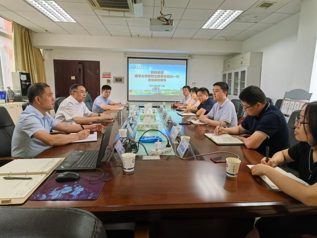 6月13日,南华大学研究生院院长李乐、副院长李鹏程一行来院调研交流。院长杨华峰、副院长龙科军、相关科室负责同志参加调研交流会。