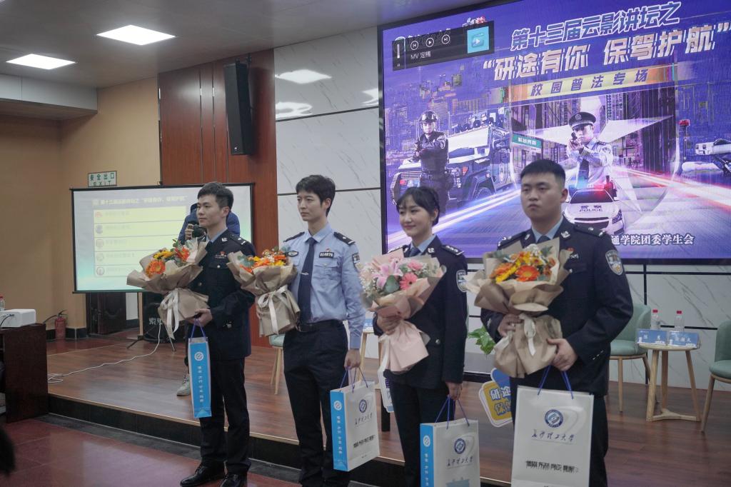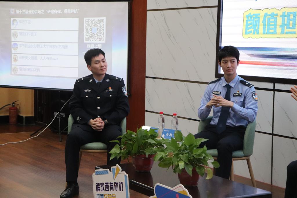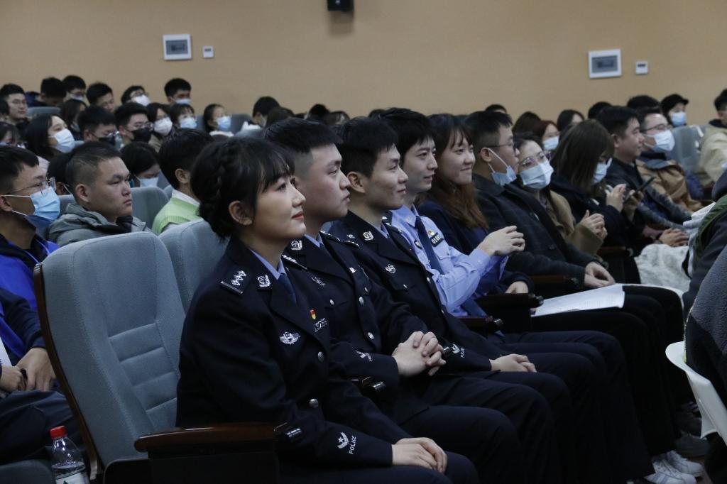 12月22日晚七点,《守护解放西》的“明星”警官及节目组应威廉体育williamhill校研究生团学组织的邀请做客云影讲坛,在金盆岭校区四教报告厅举行了一场“研途有你,保驾护航”主题讲座。来自长沙市坡子街派出所的陈慧、涂瀚文、欧阳睿乙、齐翔宇警官受邀出席,为现场200余名师生带来了一场别开生面的校园普法活动。
