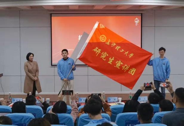 研究生宣讲团自今年5月筹建以来,在校党委研究生工作部和马克思主义学院的共同指导下,开展了大量卓有成效的工作。承担了长沙市“学党史、守初心、共成长”主题宣讲任务,为近万名中小学生送去上百场党史课,获评“优秀组织单位”;主讲了研究生入学教育“校史校情”报告,以12场专场报告让长理特色文化深刻影响全体研究生新生;与湖南大学博士理论宣讲团联合深入长沙市内多个社区开展宣讲,产生了良好的社会反响。本次授旗仪式标志着威廉体育williamhill研究生宣讲团正式组建,未来他们将坚持以习近平新时代中国特色社会主义思想为指导,充分发挥学校科研理论资源和人才资源的优势,坚持深入青年,深入一线,用高质量理论宣讲服务师生与社会,努力讲好长理故事,讲好中国故事,讲好党的故事,将党的历史、党的理论成果和长理精神传播到校园内外。