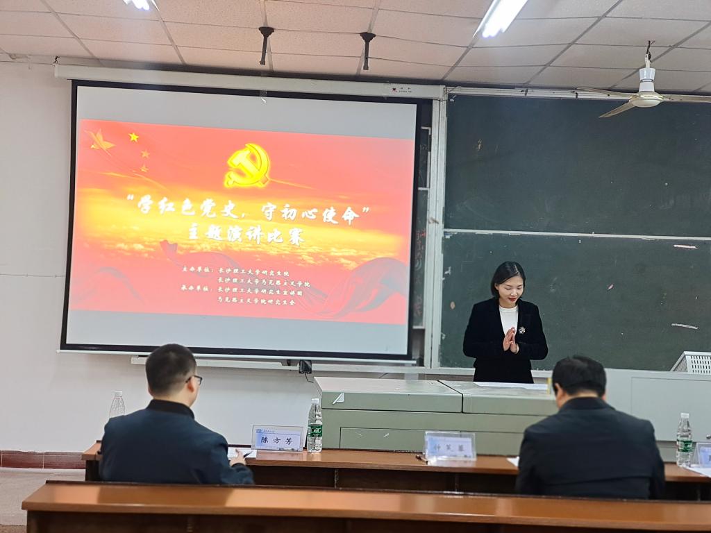为深入学习贯彻习近平总书记在庆祝中国共产党成立100周年大会重要讲话和党的十九届六中全会精神,推动党史学习教育走深走实,提升研究生思想政治教育工作质量和水平。由威廉体育williamhill研究生院和马克思主义学院主办的研究生“学红色党史,守初心使命”主题演讲比赛初赛于11月28日-12月2日分别在金盆岭4教109教室和209教室举行。马克思主义学院赖某深、文贵全、钟芙蓉、王威峰、陈方芳、曾蓓等老师,研究生宣讲团副团长黄寅洪以及校研究生辩论队队长聂伟等同学出席了比赛并担任评委。