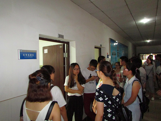 作为研究生新生,入学最重要的任务是科学合理的规划研究生学习生涯,为未来三年及今后的职业生涯确立奋斗目标并打下坚实的基础。为此,在学院党委的关心指导下,于9月8日上午9点组织研究生新生参观“红外光谱室”“化学”、“食品科学与工程”、“化学工程与技术”、“生物工程”、“环境科学”等基础课实验室。本次活动由研究生辅导员刘文成带队,实验中心主任张跃飞博士介绍讲解,2016级全体研究生新生参加。