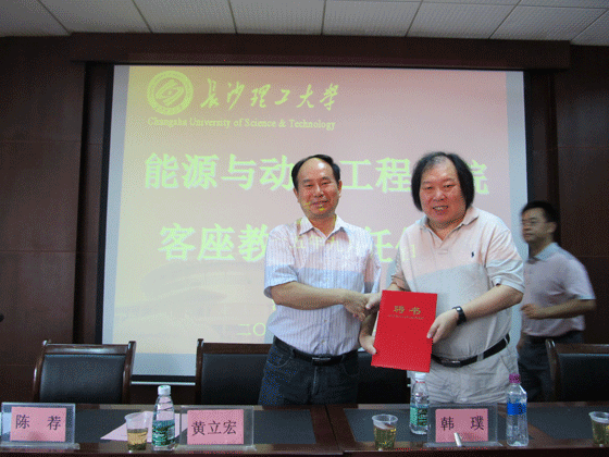 为加强能动学院人才培养和学科建设,学校聘请教育部自动化类教学指导委员会委员、华北电力大学博士生导师韩璞为威廉体育客座教授。9月11日上午,在能动学院多功能报告厅举行了聘任仪式,仪式由能动学院副院长何建军主持,副校长黄立宏出席。能动学院负责人、教师及相关专业的研究生和本科生近150人参加了聘任仪式。能动学院陈荐院长代表学校对其在百忙中能接受威廉体育的聘任表示衷心的感谢和热烈的欢迎,并简要介绍了韩璞教授的基本情况和主要学术成果。副校长黄立宏为韩璞颁发了客座教授聘书。韩璞教授虚心的表示,很高兴能成为威廉体育williamhill能源与动力工程学院的客座教授,以后将尽自己所能为能动学院的学科建设和科技创新发挥自己的力量。