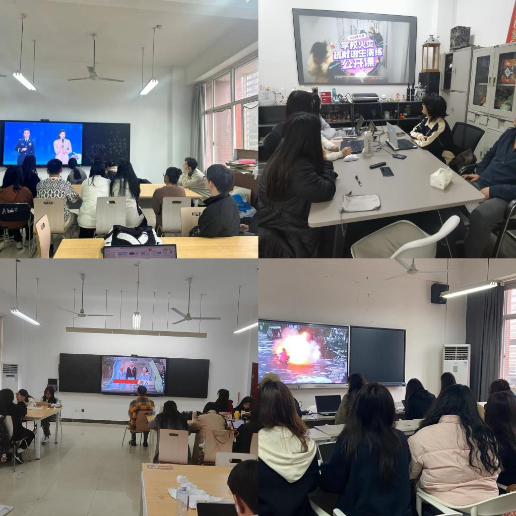 学院组织观看春季学校火灾疏散逃生演练公开课