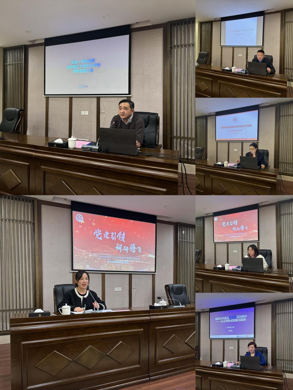 1129日晚,设计艺术学院“党建引领·科研腾飞”首届青年教师发展论坛以“青年教师科研能力提升”为主题,在湖南省总工会职工培训基地会议室顺利召开,活动由党委书记郭剑主持。她强调,党的二十届三中全会提出“教育、科技、人才是中国式现代化的基础性、战略性支撑”,在全国上下深化教育综合改革的大背景下,设计艺术学院的教师队伍建设要进一步融入学校改革发展的大潮,加快提升自身素质能力。而科研能力是每一位设艺青年教师必须要跨越的高山,必须要蹚过的急流,学院的改革发展需要每一位设艺人努力拼搏,只有奋斗才是一切的答案。