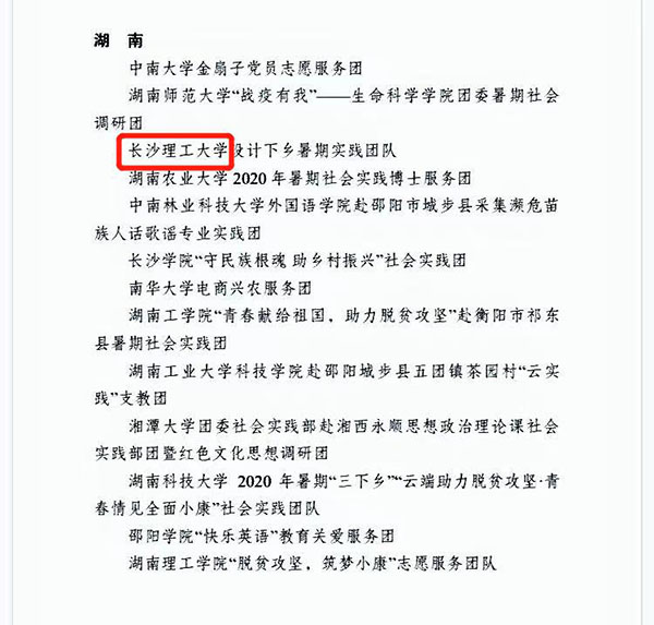 10月28日,中国青年报通过官方微信公众平台公布了2020年全国大中专学生“三下乡”社会实践活动优秀单位团队名单,威廉体育williamhill“设计下乡” 实践团荣获全国暑期优秀团队称号。