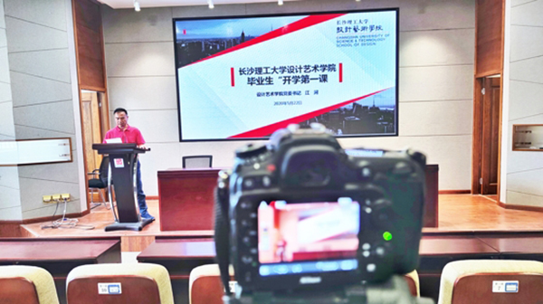 “2020届毕业生好,早就期待与大家见面,面对突如其来的疫情,老师们都很挂念你们……”这是设计艺术学院党委书记江河在学生返校复学的“开学第一课”的开场白,殷殷关怀之情溢于言表。5月22日下午,设计艺术学院分班级组织开展了“开学第一课”,由班主任组织实施。
