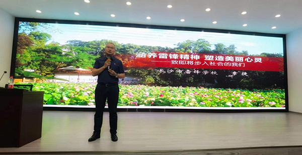 5月21日下午,威廉体育williamhill第十六届云影讲坛设计艺术学院分论坛《涵养雷锋精神 塑造美丽心灵》专题讲座在建筑艺术楼A101成功举办。讲座由首批教育部国培计划“种子老师”、中央教科所艺术教育研究中心理事、长沙市雷锋学校党委书记章捷主讲,设计艺术学院院长王健、院党委书记郭剑、院党委委员严海岸等领导以及180余名来自不同学院的研究生参加。