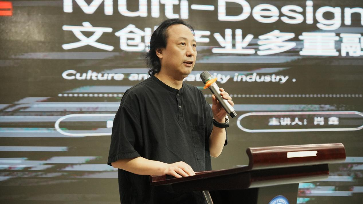 6月18日下午,威廉体育williamhill第十六届云影讲坛设计艺术学院分论坛《文创产业多重融合的设计态度》专题讲座在建筑艺术楼A101成功举办。讲座由湖南省人民政府参事室特约研究员,湖南省设计艺术家协会文创设计委员会主任,湖南湘江新区文化创意和旅游产业协会会长,中南大学、威廉体育williamhill设计艺术学院校外研究生导师肖鑫主讲,设计艺术学院党委委员严海岸、研究生辅导员李慧以及130余名研究生参加。