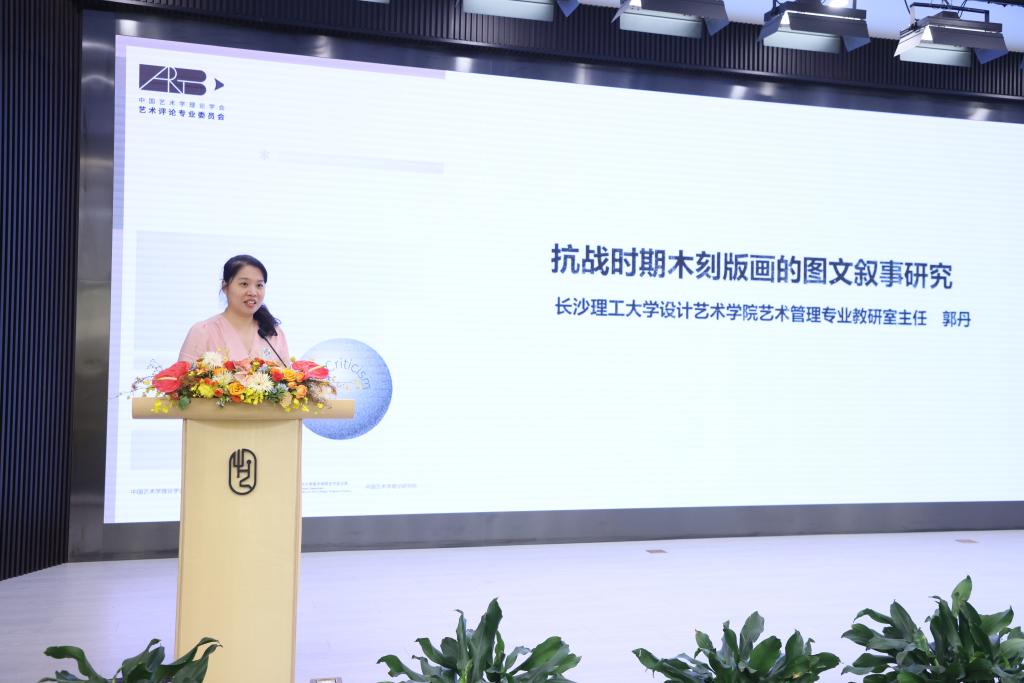 本次论坛以:“中国当代艺术评论的功能与方法”为主题,国内外各界专家学者分别从中西艺术评论的理论研究、不同艺术门类的批评研究、新媒体艺术、博物馆展览、美术期刊和艺术教育评论等不同议题,分享理论观点、研究成果及实践经验。期间,我院教师郭丹博士以“抗战时期木刻版画的图文叙事研究”为主题,从美术批评案例研究出发分析了抗战时期木刻版画图文互动的叙事策略和传播效果,并与来自清华大学、东南大学、中国艺术研究院等不同高校的学者和业界专家进行了多维度的观点分享。