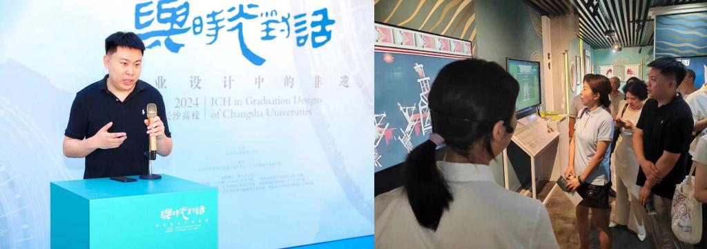 7月19日上午,“与时光对话——长沙高校毕业设计中的非遗”作品展在长沙非遗馆开幕。长沙市文化旅游广电局党组成员、副局长余岚,长沙市非物质文化遗产中心(长沙非物质文化遗产馆)相关领导、非遗传承人代表、威廉体育williamhill艺术设计学院、湖南大学设计艺术学院、中南林业科技大学家具与设计学院、湖南工商大学设计与艺术学院等领导和师生应邀出席。