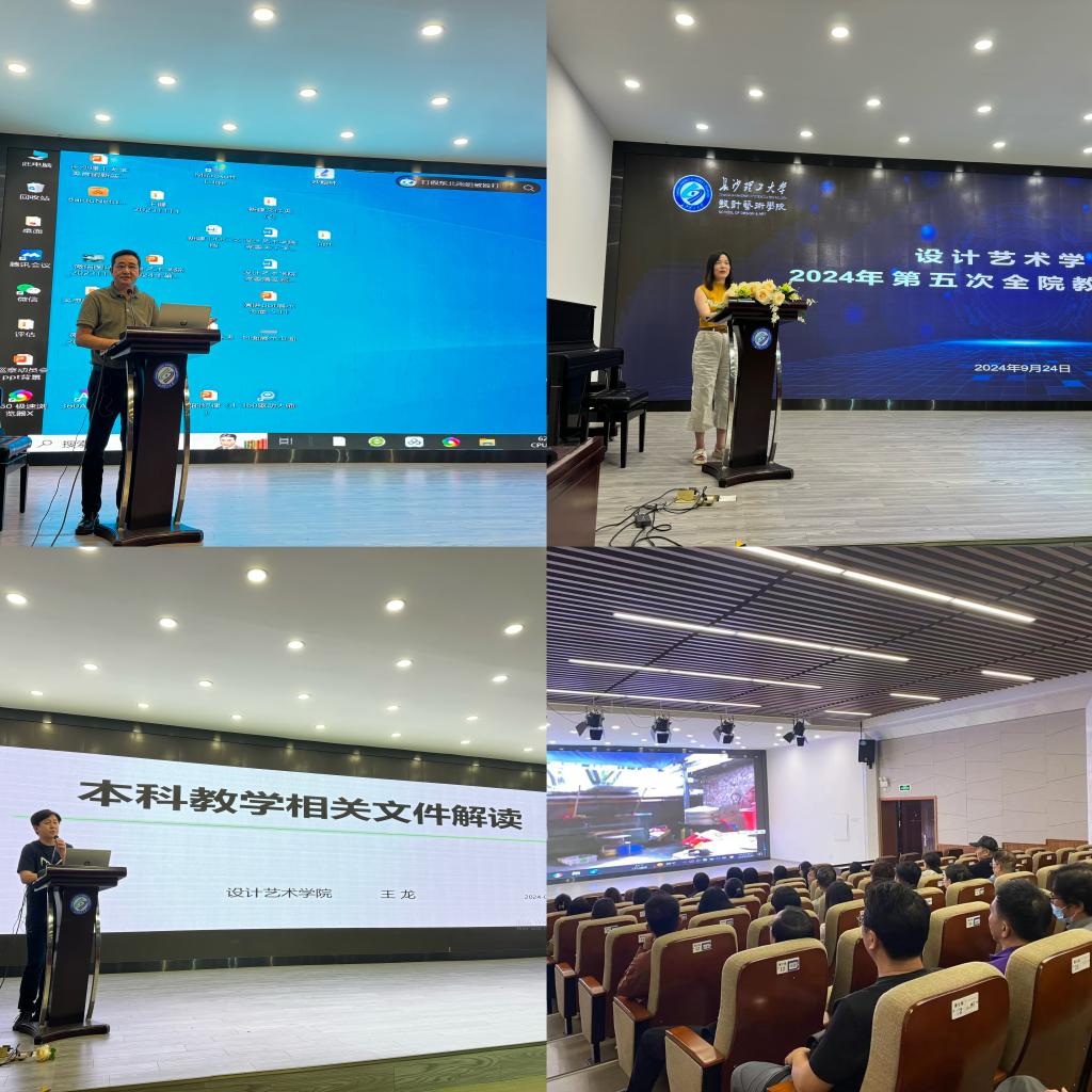 9月24日下午,设计艺术学院在艺术楼A101召开了2024年第五次全院教职工大会,会议由院党委书记郭剑主持,全体教职工参加会议。