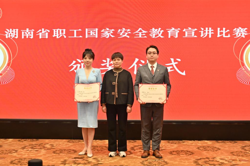 本次比赛旨在深入贯彻落实党的二十大和二十届二中、三中全会精神,全面落实总体国家安全观,切实增强广大职工国家安全意识和法治素养,筑牢国家安全人民防线,营造维护国家安全的浓厚氛围。比赛吸引了全省各地市各行业选送的职工代表积极参与,决赛现场22名优秀选手激烈角逐。最终,我教师程静征作为湖南省教育工会唯一代表参赛,在强手如云中斩获第二名的佳绩,并成为湖南省“职工国家安全教育宣讲团”成员。