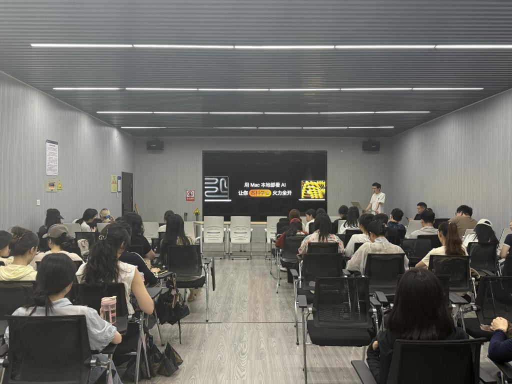 主讲人围绕Mac系统的生态优势,系统阐述了本地化AI部署的技术逻辑,并结合Midjourney、Deepseek等主流工具,演示了从环境配置到模型训练的完整流程。他强调,本地部署AI不仅能通过自动化处理加速设计迭代,还能更好地保护数据隐私、个性化创作等方面为研究生提供关键支撑,对设计艺术领域的研究和创作具有重要意义。讲座现场,研究生们全程专注聆听,并通过笔记本记录关键操作步骤。