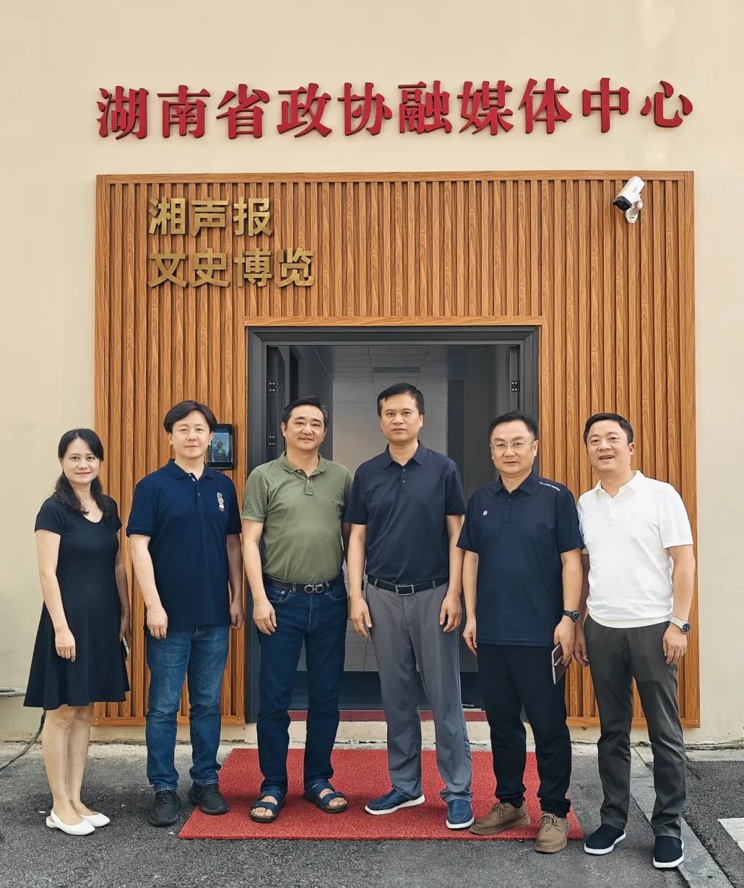在中心主任郭俊杰、副主任王勇、管理部副总监吴刚、资深策划熊指挥的陪同下,王健院长携副院长王龙、信息设计系主任朱诗源实地考察了省政协融媒体中心报纸、期刊、网站等数字内容生产区域,以及演播厅等视频制作区域,直观了解了融媒体中心的内容生产全流程与实践成果。在随后的交流会上,郭俊杰主任详细介绍了中心媒体的平台建设与内容产品情况,以及“湘声报”“文史博览”等核心品牌的融媒体运营模式,双方围绕"AI+视觉设计""数字文博传播""政务媒体创新"等议题,共同探讨设计学科在融媒体传播领域的应用潜力。