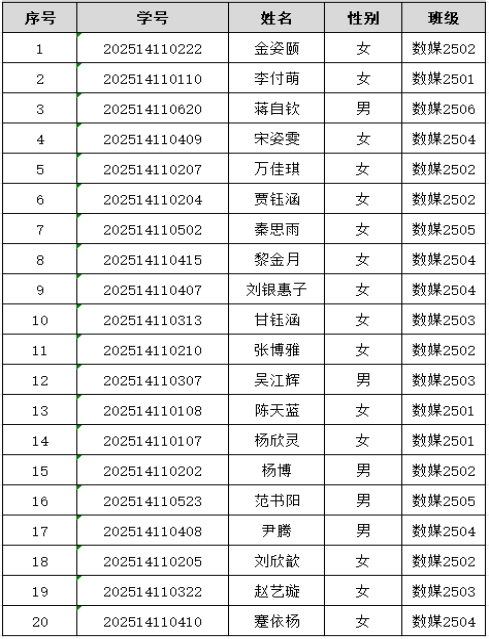 设计艺术学院2025级数字媒体艺术专业(创新班)录取名单公示