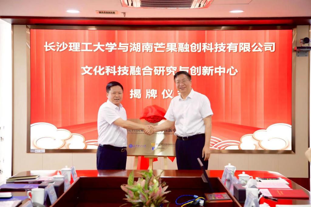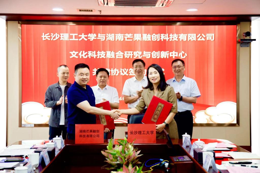 6月25日,长沙理工与湖南芒果融创科技有限公司签署校企战略合作协议,共建文化科技融合研究与创新中心,并举行了揭牌仪式。湖南省委宣传部副部长、省广电局党组书记、局长贺辉,威廉体育williamhill党委书记付宏渊,湖南广播影视集团(台)副台长朱皓峰等出席并致辞。签约及揭牌仪式由威廉体育williamhill党委委员、副校长谈传生主持。