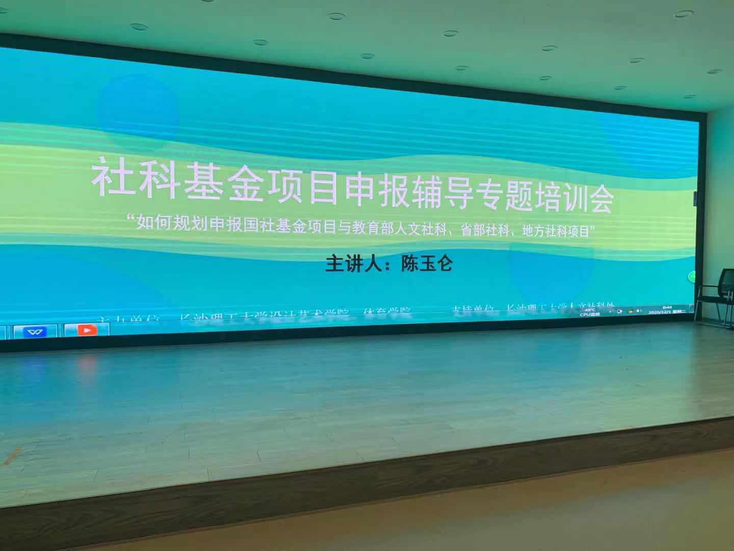 为提高我院教师申报国家社会科学基金项目的质量和研究生的科研水平,学院于2020年12月1日在艺术楼A101举办《社科基金项目申报辅导专题培训会》,并邀请中央党校陈玉仑教授做为期一天的专题培训。培训会由李娟娟副院长主持,人文社科处刘建江处长出席会议并做指导,艺术学院教师及学院全体硕士研究生参加了此次培训会。