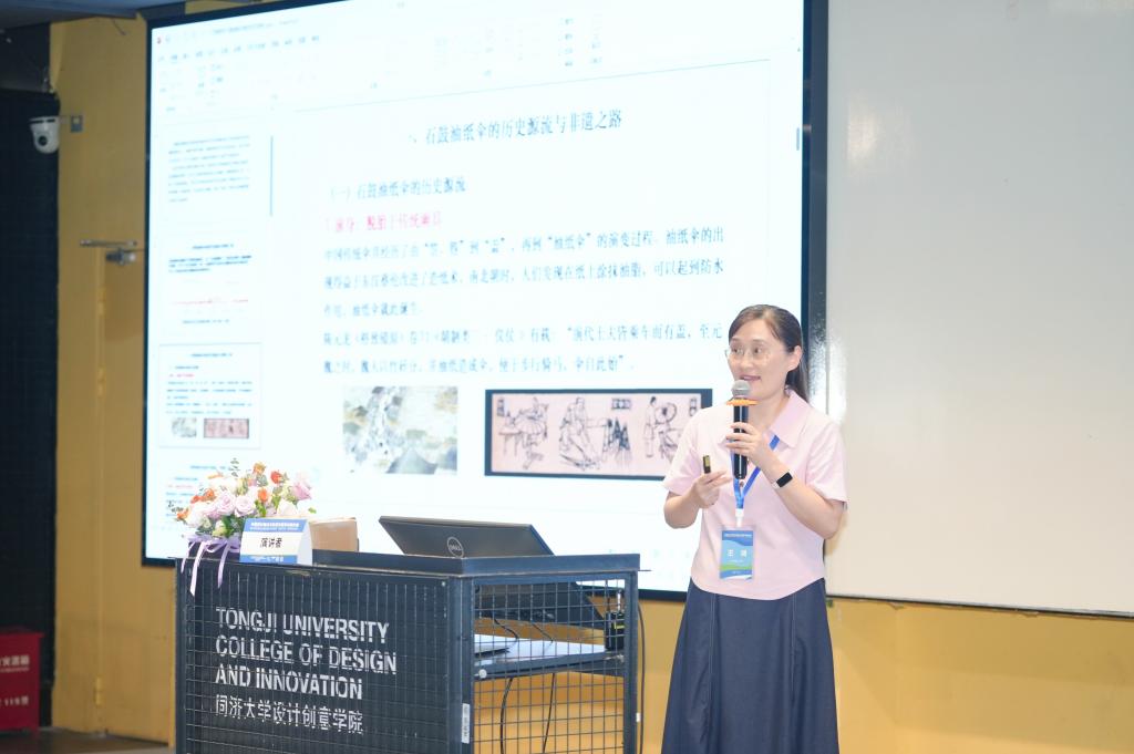 本次论坛共分四个单元,分别是生态文明学基本问题、生态文明设计学多元建构、生态文明设计学传承发展、生态文明学与工匠文化。王琦教授担任了第二个单元“生态文明设计学多元建构”的主持,并在第三个单元“生态文明设计学传承发展”发表了题为“石鼓油纸伞技艺探析”的主题演讲,从非遗传承的角度,以省级非遗项目湘潭石鼓油纸伞的技艺特征与当代价值为例,讨论了生态文明视角下非遗设计的方法和可能,具体表现为技艺基因、文化符号与产业生态三位一体的逻辑。其中,技艺基因是指对非遗产品的材料、工序和形制进行解码,文化符号是指将材料特性、工序流程等提炼为可传播的文化符号,产业生态则是指通过对非遗传承的本体保护以及现代设计转化的方式促进文旅产业发展,使传统工艺在当代设计语系中再生。该演讲获得了与会专家、学者的好评。
