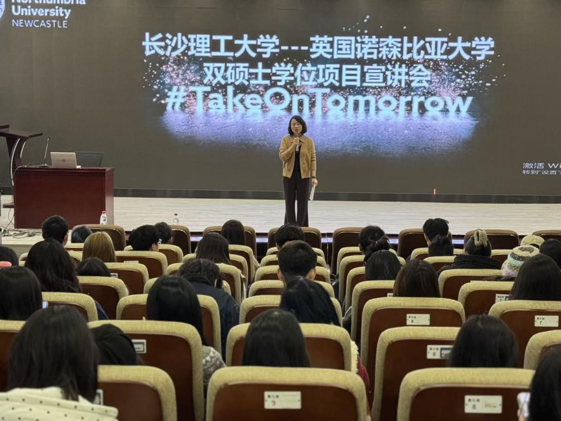 宣讲会现场座无虚席,吸引了众多对国际化学习机会充满期待的研究生。李娟娟副院长首先介绍了学院近年来在国际交流与合作方面取得的成果,并强调在全球化背景下,具备跨文化学习经历和国际化视野已成为高层次设计人才的重要竞争力。她指出,与诺森比亚大学的双硕士项目是学院深化国际合作、提升人才培养质量的重要举措之一。