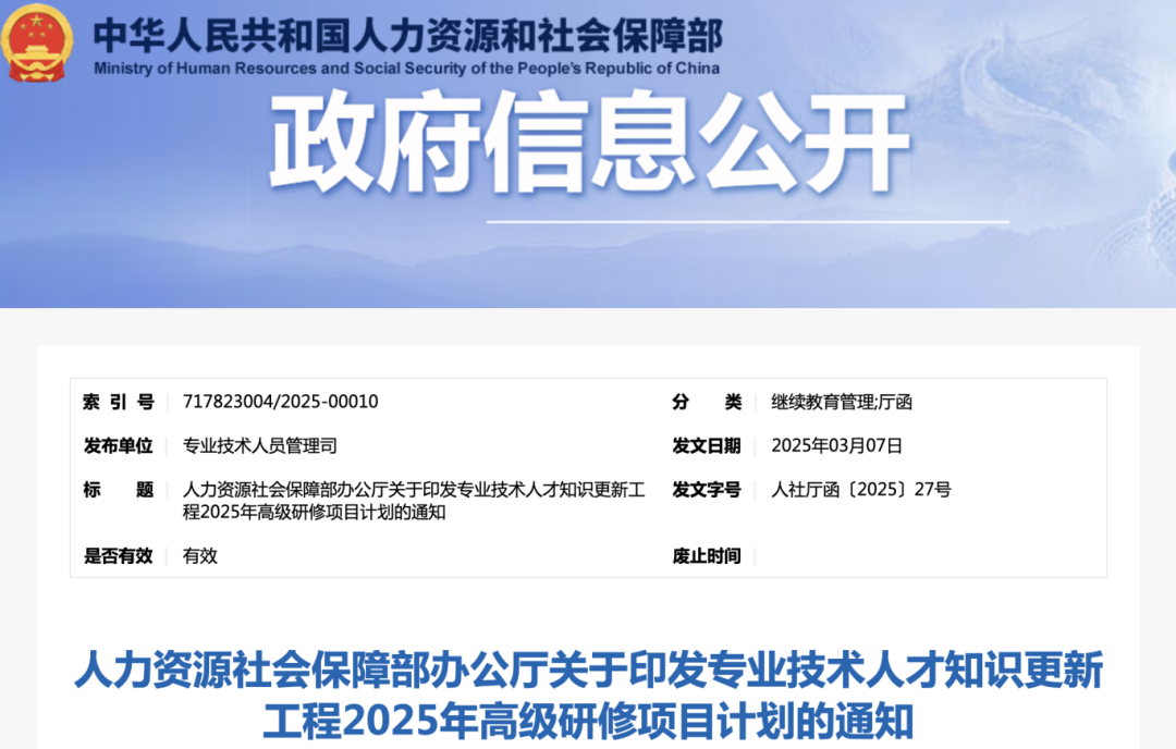 威廉体育williamhill获批人社部2025年高级研修项目计划
