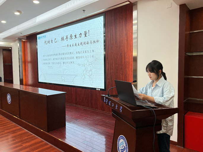 活动开始,主持人刘家琳从“原生家庭”的含义出发,讲述了原生家庭的对于个体心理发展的重要性。接着同学们阅读了三个小时有关原生家庭的书籍并认真记下了笔记。在之后的互动环节,有两位同学分享了自己的阅读感受,以自己的经历为例,激励大家要接纳自己,去找到原生家庭的积极力量。最后大家合照留念,本次阅读马拉松活动圆满结束。