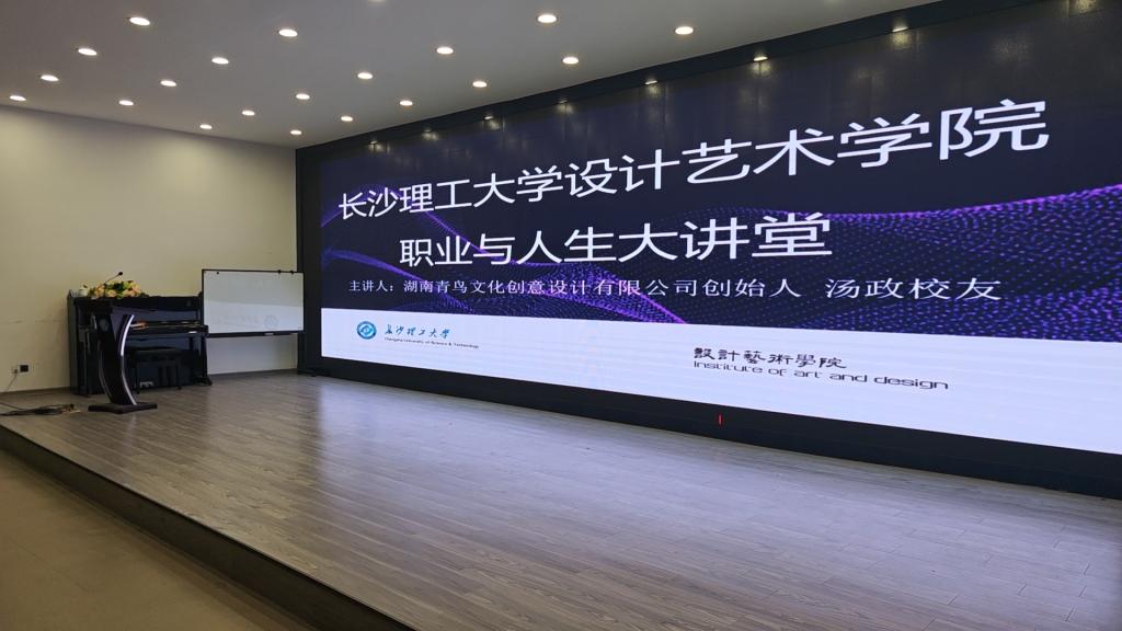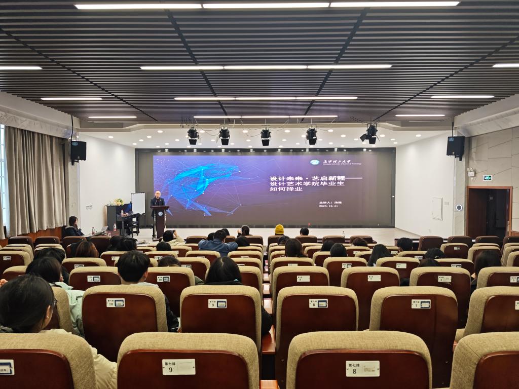 1月4日上午,威廉体育williamhill设计艺术学院“职业与人生”大讲堂在建筑艺术楼A101会议室如期举行。本次活动特邀湖南青鸟文化创意设计有限公司创始人、学院优秀校友汤政返校,以“设计未来・艺启新程—设计艺术学院毕业生如何择业”为题开展分享。学院党委书记郭剑、副书记宋国宁及大一至大四各年级学生代表共同参与,现场氛围热烈融洽。