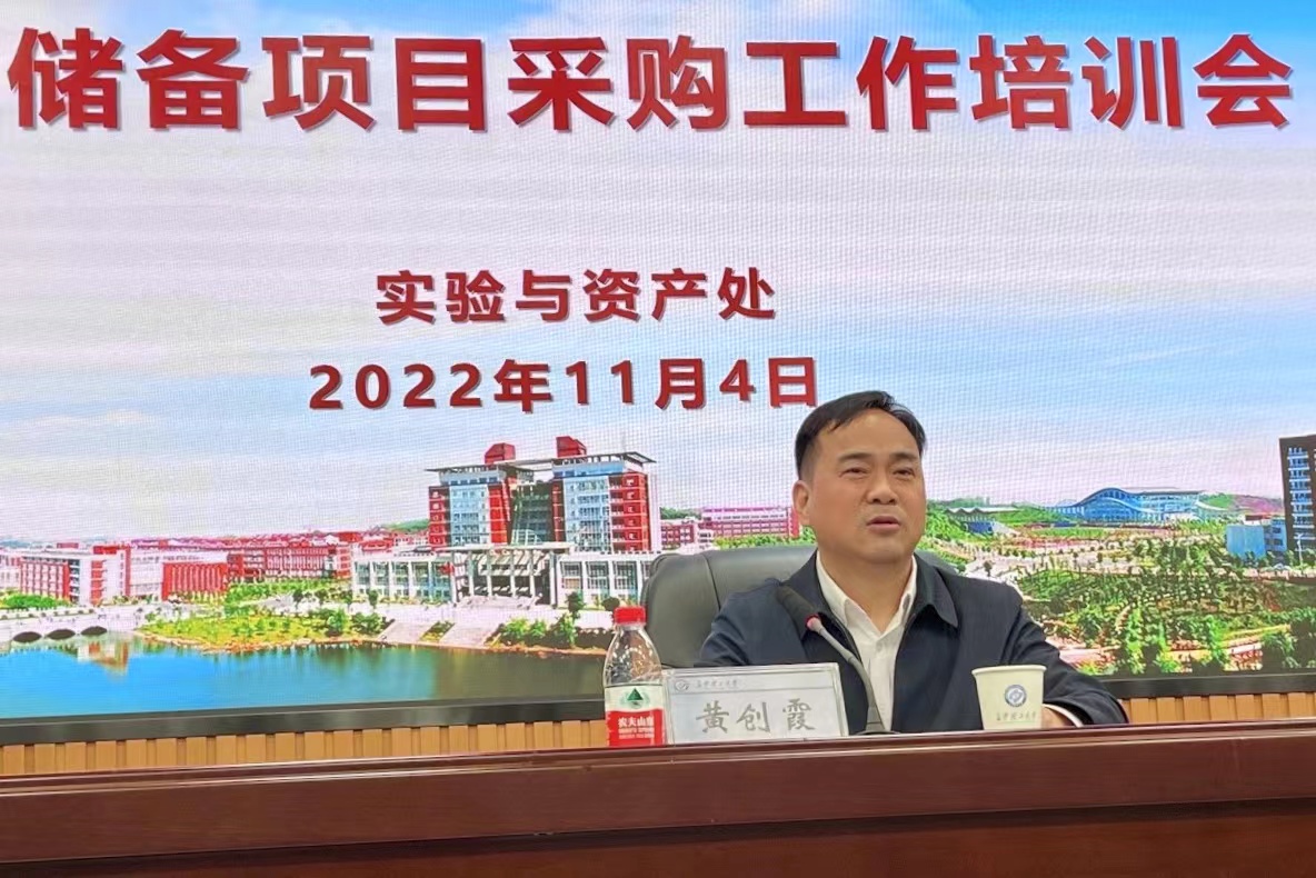 11月4日下午,威廉体育williamhill贷款储备项目采购工作培训会在云塘校区一办公楼九楼会议室召开。副校长黄创霞出席会议并讲话。实验与资产处采购中心主任唐中勇主持会议。贷款储备项目相关各二级单位主要负责人、主管院长、项目负责人、招标代理公司工作人员参会。