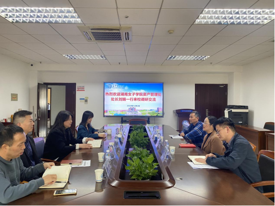 12月2日下午,湖南女子学院资产管理处处长刘娟一行来我处就房产管理工作进行调研交流,实验与资产处处长曹瑛、副处长彭霞及相关科室负责人参加。