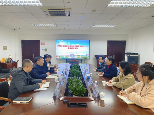 12月19日,湖南科技学院副校长郑银芳一行4人来校就采购与招投标工作开展调研交流。威廉体育党委委员、副校长张军辉,实验与资产处处长曹瑛、副处长唐中勇和相关科室负责人参加调研。