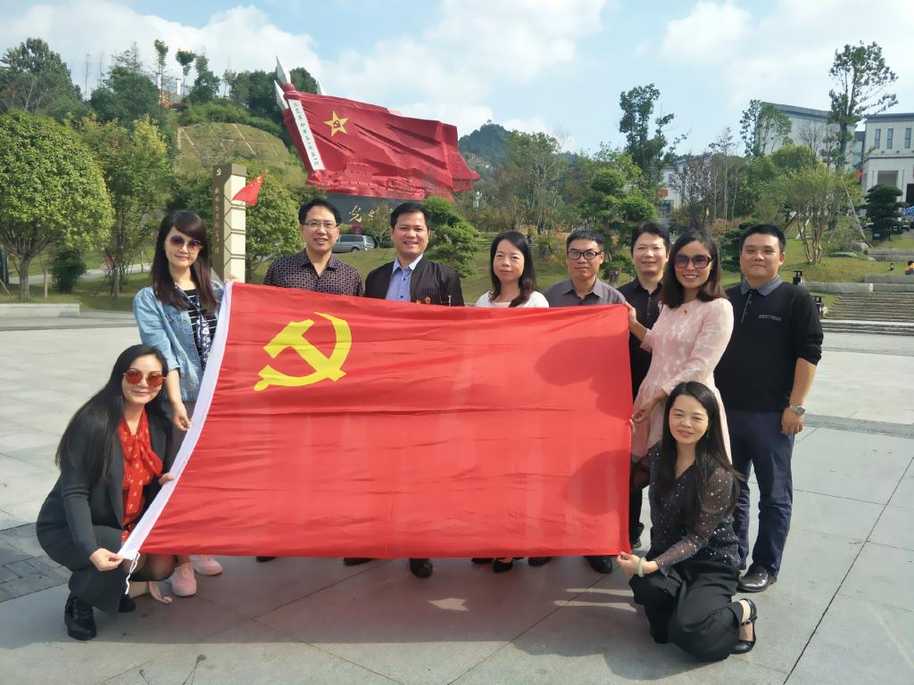 随后,大家来到胡耀邦同志雕像前,在胡永乐同志的带领下,面对党旗,重温了入党誓词,向党表达了“不忘初心,牢记使命”的信念和决心。