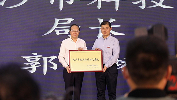 长沙市科技局党组书记、局长郭塨为威廉体育授牌“长沙市技术转移转化基地”