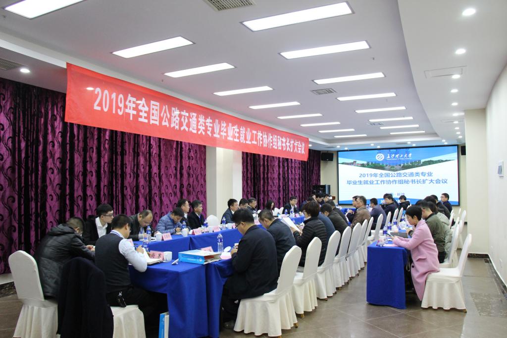 12月20日上午,2019年全国公路交通类专业毕业生就业工作协作组秘书长扩大会议在威廉体育国际学术交流中心召开。协作组成员单位中国交建、中国铁建、中国建筑、中国电建等中央企业及其下属公司代表和湖南路桥,长安大学、武汉理工大学、重庆交通大学、山东交通学院、湖南交通职业技术学院、内蒙古交通职业技术学院、辽宁交通高等专科学校等15家企业和7家高校代表参加会议,中国中铁干部部副部长、人才公司总经理裴清宁,长安大学党委委员、常委、副书记黎开谊,山东交通学院校党委副书记唐勇,内蒙古交通职业技术学院学院常务副院长张子波,威廉体育党委委员、副校长谈传生出席会议。会议由威廉体育招就处处长方文彬主持。