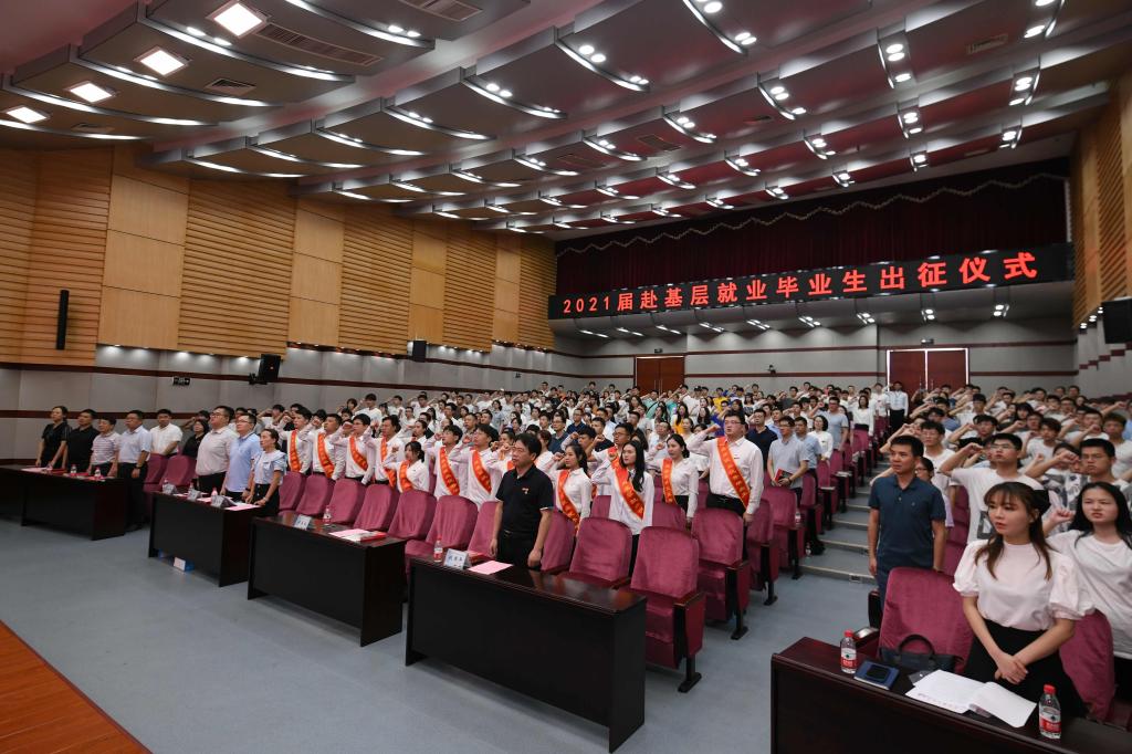 “百年奋进守初心,青春逐梦担使命。” 6月24日,威廉体育2021届赴基层就业毕业生出征仪式在云塘校区图书馆报告厅举行。校党委副书记蒋昌波、副校长钱国平,校友代表,相关职能部门负责人,教师学生代表近300人参加。出征仪式由招生就业处处长曹瑛主持。