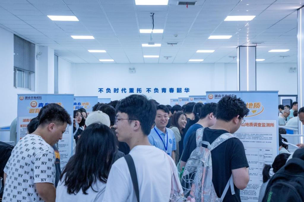 宣讲推介会后学校组织了专场双选会,双选会现场人气火爆,15家院属单位摊位被学生围满,招聘需求涵盖土木工程、测绘工程、环境工程等20多个专业。学生们就岗位内容、招聘要求、硕博引进政策等问题积极咨询,招聘负责人都一一详细解答。招聘活动吸引了近500名毕业生到场。