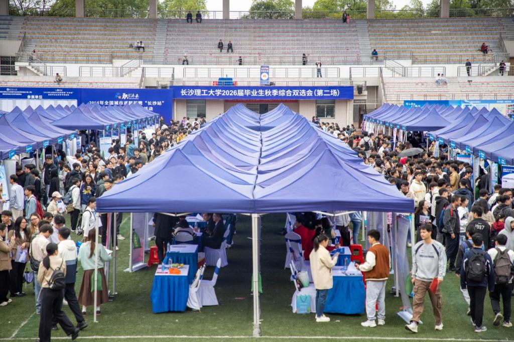 双选会现场气氛热烈,到场学生超5000人,提供岗位20000+。用人单位涵盖交通、电力、水利、智能制造、信息技术、金融、教育、新能源材料等多个行业领域,为毕业生提供了丰富多元的就业选择。此外江西宜春、江苏昆山和省内的长沙、株洲等地人社部门也组织了超200家企业组团参会,积极招揽威廉体育优秀毕业生。