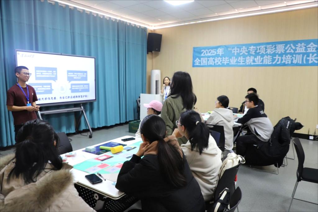 课程现场,朋辈导师们褪去“学长学姐”的身份标签,化身贴心的“职业引路人”。他们结合自身专业、实习实践、备战考研考公等真实经历,用同龄人的视角拆解职业规划难点,分享求职避坑技巧,传授备考实用策略。课堂上,既有干货满满的经验分享,也有一对一的互动答疑。随后,学生在朋辈导师带领下,沉浸式体验“步步为赢”、“价值观竞选”、“职场过山车”三款团体辅导实训教具,分别助力厘清生涯规划、梳理职业价值取向、提升职场应变与协作能力。课后,朋辈导师通过线上社群持续为学弟学妹答疑解惑,分享行业动态、招聘信息,搭建起常态化交流桥梁,实现“一次课程、长期赋能”。