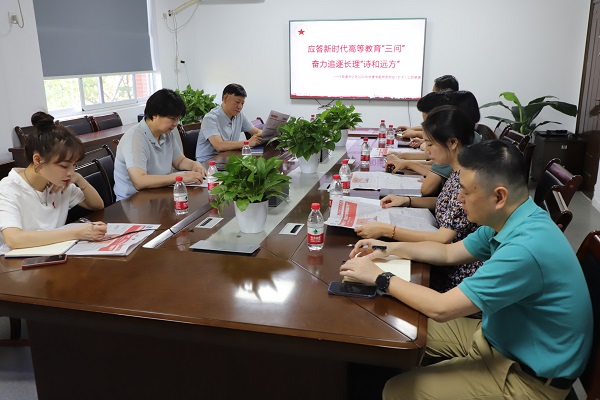 会上,曹瑛通过PPT演示带领支部党员学习了校党委书记付宏渊《应答新时代高等教育“三问” 奋力追逐长理“诗和远方”》的讲话全文,围绕深刻把握新时代党的教育方针,坚定社会主义办学方向;坚持立德树人,回归教育的本质;全面提升治理效能,建设“幸福长理”等三个方面进行了详细解读。支部党员结合会前个人自学,纷纷表态一定将讲话精神落实到实际工作中。